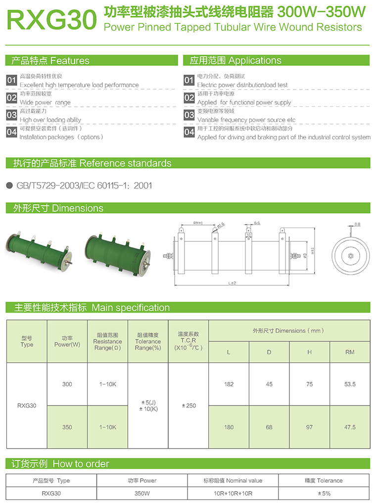 RXG30功率型被漆抽头式线绕电阻器